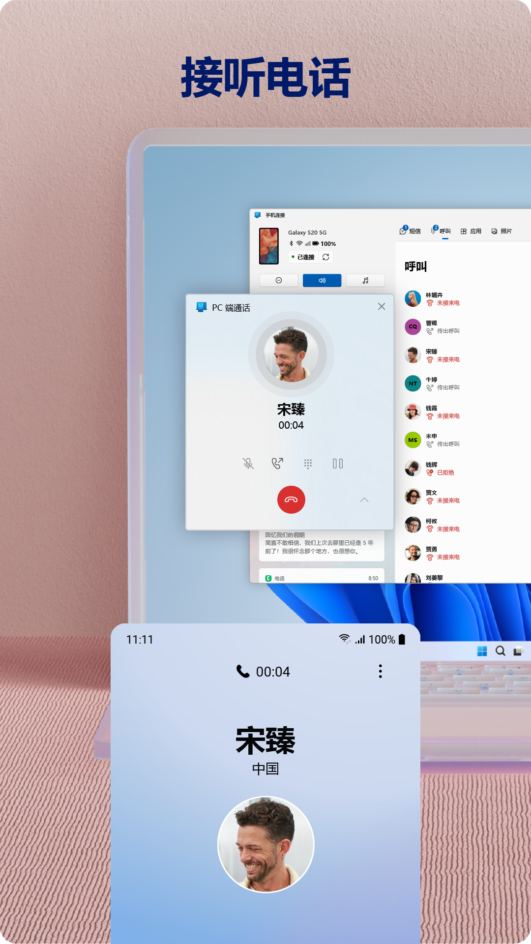 直接在电脑上接打Android手机的电话。