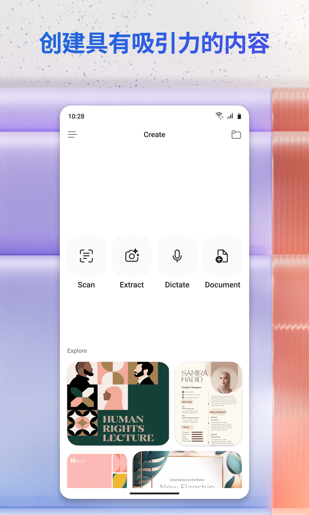 Microsoft Office 是一个安卓办公应用,集成了Word、Excel及PowerPoint的全能办公应用程序,它极大地方便了用户,无需分别安装这三个独立的应用,如此一来,用户直接可以在手机上直接处理各种文档,不管用来生成PDF亦或者修改.doc、.xls、.ppt等格式的文件,都非常方便,让你在手机上即可轻松办公。