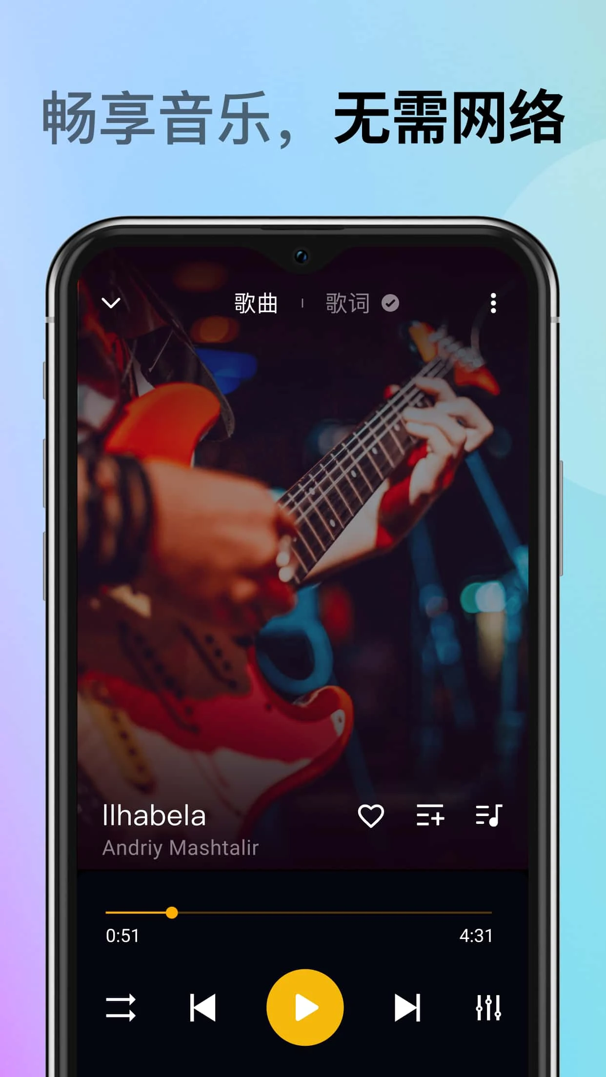 离线音乐播放:无需网络连接,可在任何地方播放设备上的音乐文件,享受离线音乐体验。