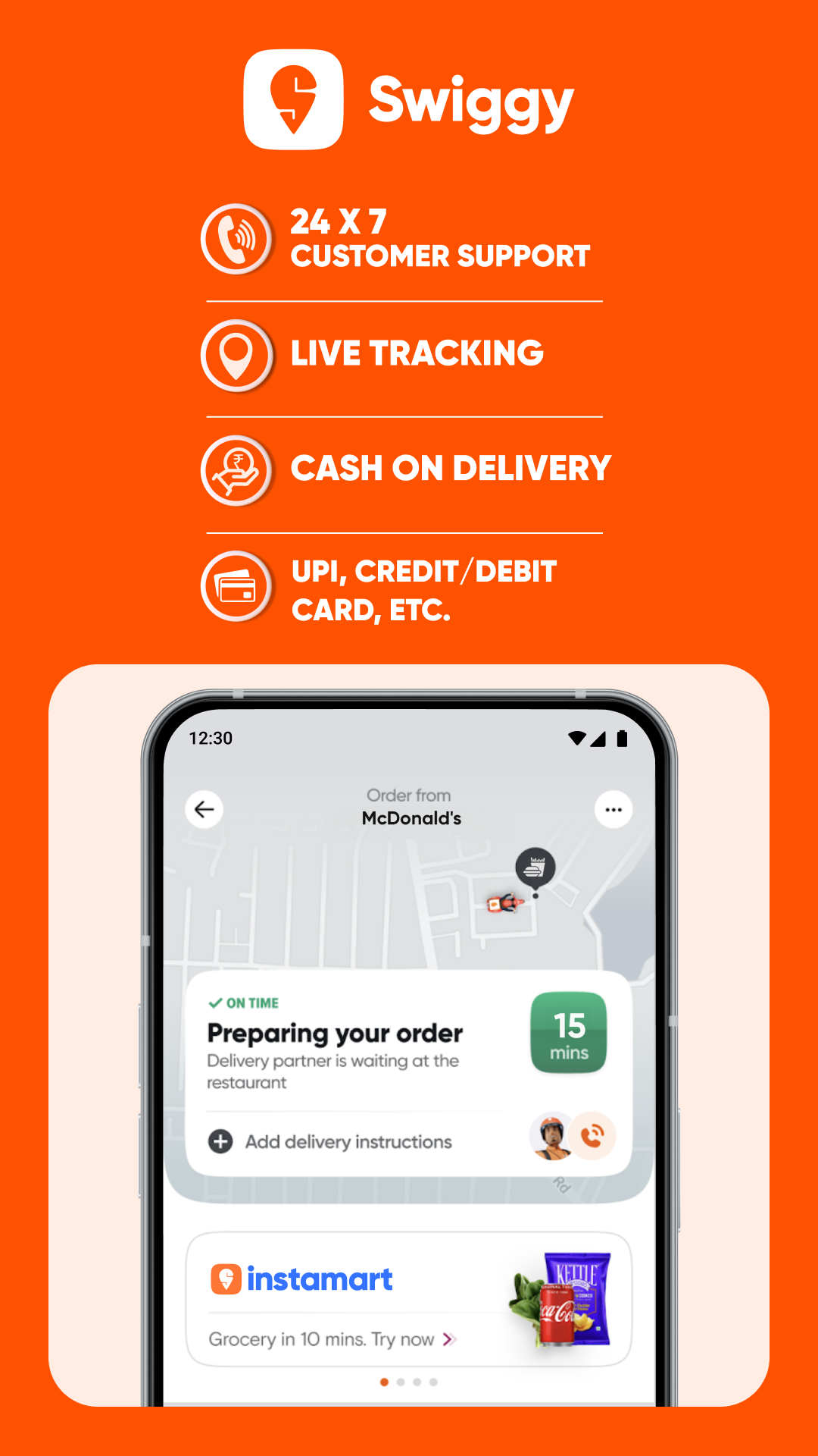 - Swiggy Instamart服务可在10分钟内将杂货送达,满足各种需求。