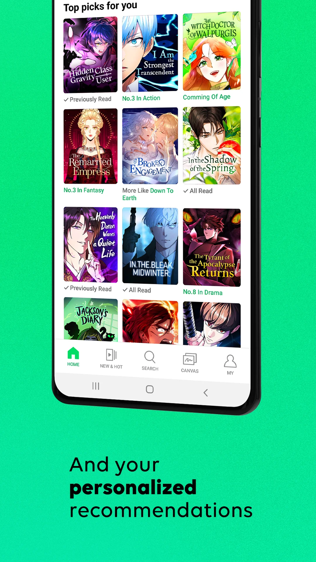 Webtoon是一款优秀的漫画阅读应用,是全球最大的漫画社区。这里有海量独家正版漫画,支持多个语言的切换,内容涵盖浪漫、喜剧、动作、奇幻和恐怖等23种类型,满足的阅读需求,打开WEBTOON,订阅喜欢的漫画作品即可享受更新通知服务,确保不错过任何精彩章节,当然WEBTOON还有互动社区,分享你在漫画里的故事,是漫画爱好者的天地。