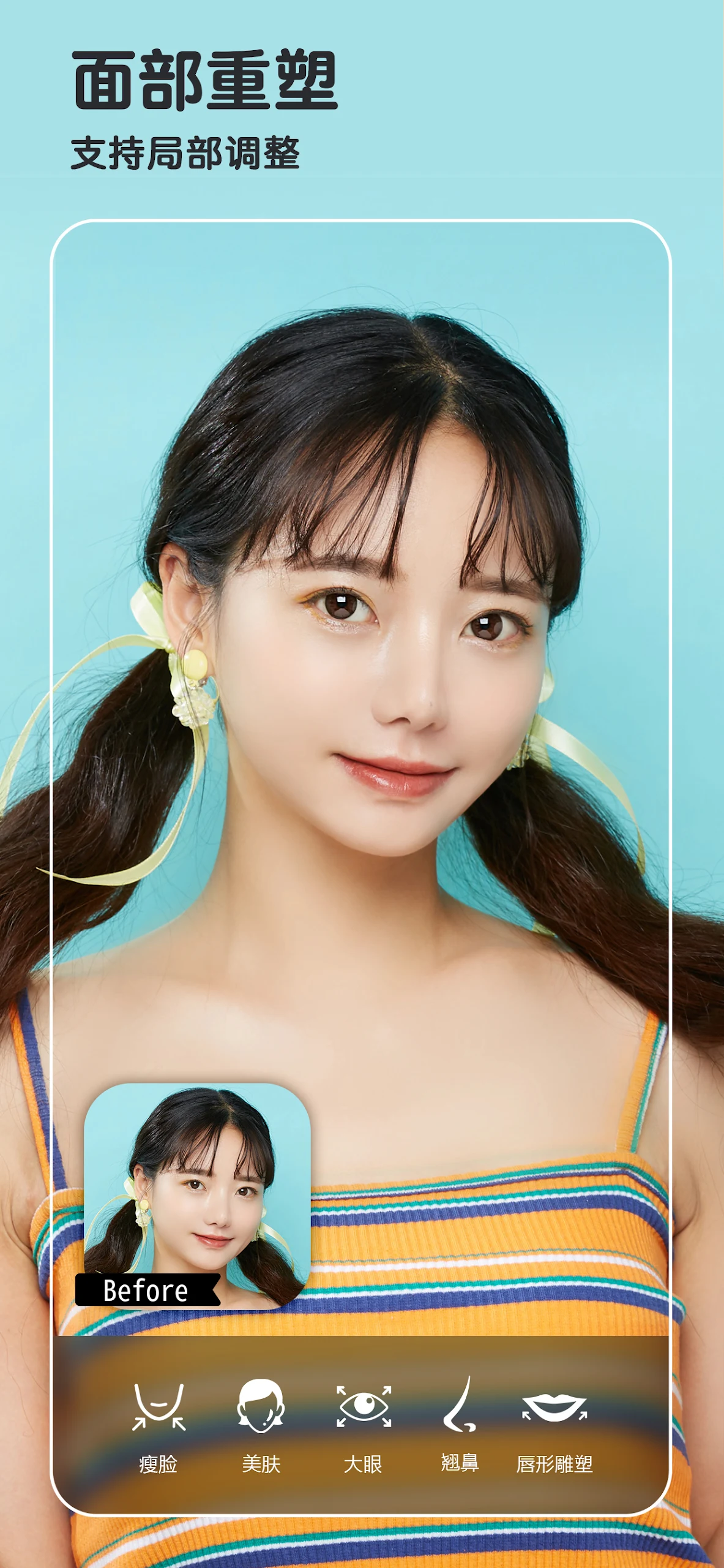 玩美相机是一款集图片编辑与自拍功能于一体的全能型手机应用,旨在帮助用户轻松捕捉并美化生活中的每一个精彩瞬间。它不仅提供了专业级的图片编辑工具,让用户可以随心所欲地调整照片色彩、对比度、亮度等,还特别搭载了先进的人像美化技术,包括智能美颜、脸部塑形、身材修饰等功能,如瘦脸、瘦腿等,让每一张自拍照都能展现出最佳状态。不论是日常记录还是创意拍摄,玩美相机都能满足你的需求,让你在社交平台上分享的照片更加出众,成为朋友圈中的焦点。